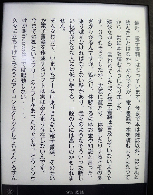 多分、このまま電子化されないかもしれません。そこで、「自炊」と呼ばれる、「自分で紙の本を電子書籍化」する作業をしているのですが、それ以外にも多くの人に自分の書いた小説、日記などを電子書籍として公開したい、と言う人も多いと思います。