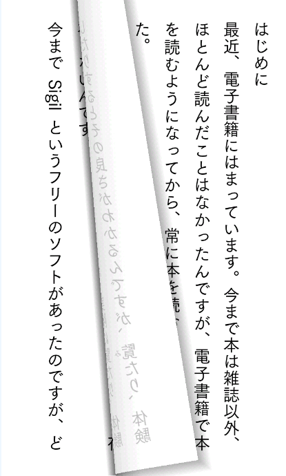 このようにページをめくるときは、紙の本のようにめくることが出来ます。