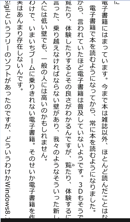 ご覧のようにちゃんと縦書きで表示されます。私は個人的には縦書きのほうが読みやすい気がします。