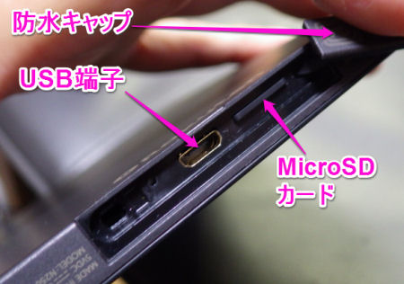 なので今までむき出しだったUSB端子やMicroSDカードの差込口が防水キャップで塞がれました。