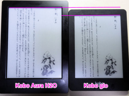 それに対してKobo Aura H2Oは、「12.9センチ」。1.5センチ広くなっています。