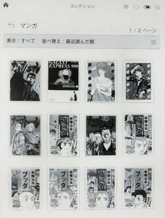 リスト表示だと、6冊ずつですが、表紙表示だと12冊まで1つのページで表示することができます。
