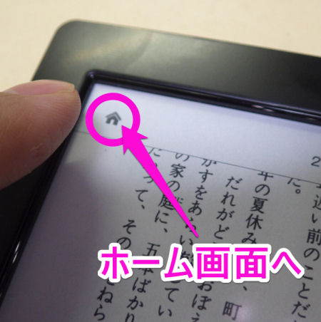 ホーム画面に戻るボタンもそのまま。画面の何処かをタッチして、左上に表示されるホームボタンをタップします。