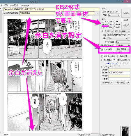 これは自炊ユーザーでなくても、マンガは画像として表示させるので、吹き出しの文字が小さかったんですよね。
