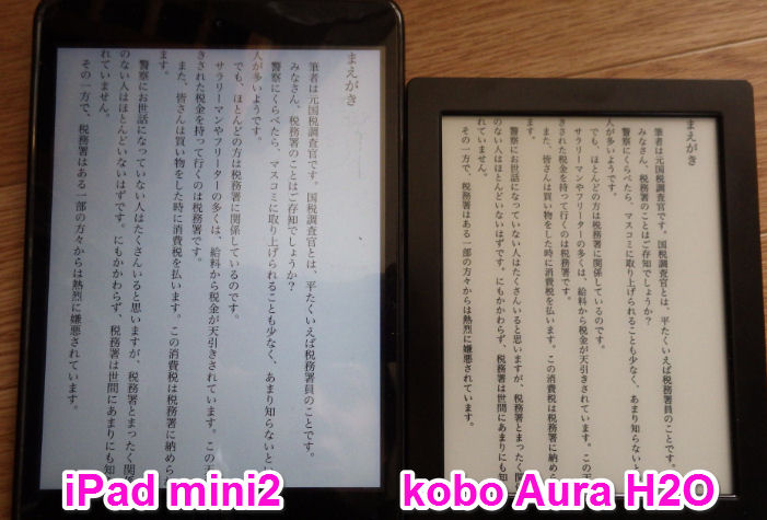 楽天のKobo Aura H2Oを購入しました。自炊ユーザーに待望の6.8インチ。OSも使いやすくなっています。kobo gloやiPadと比較してみました。