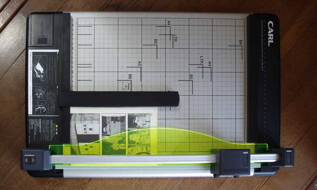 自炊がブームになった頃は、振り下ろすタイプの大型の裁断機が人気でした。