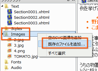 Sigilの左側に表示されている「Images」というフォルダのアイコンを右クリックし、「既存のファイルを追加」というのを選択します。