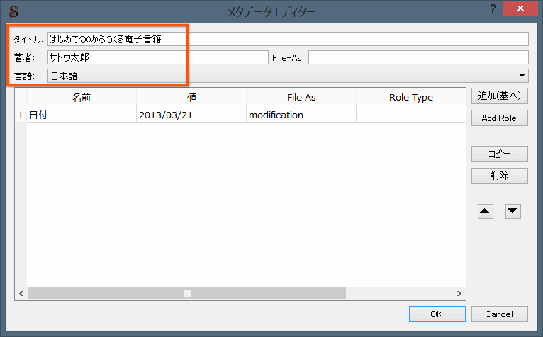 本のタイトルを設定しないと、ファイル名が本のタイトルとしてアプリ側では表示されてしまいます。