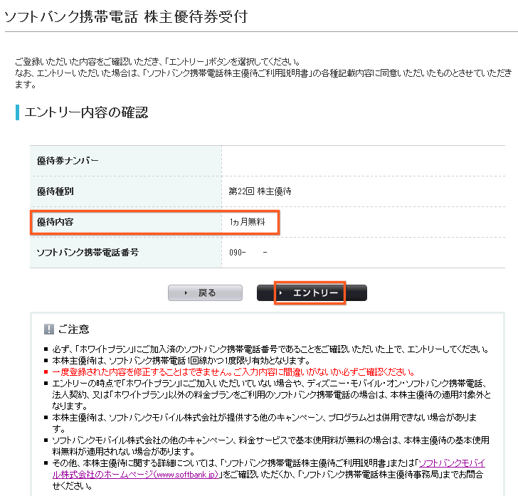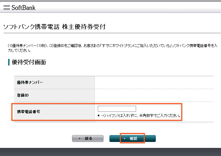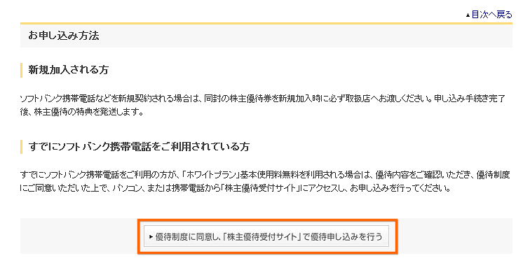 まずは、ソフトバンクの株主優待受付ページに行きます。