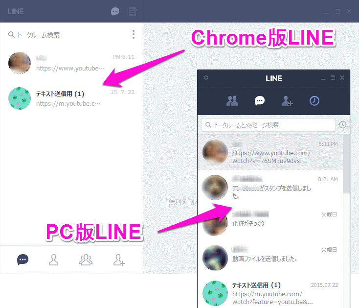 PC版LINEとChrome版LINEの違いは、PC版は友達ひとりひとり独立して窓が開ける点です。