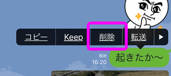 なお、ここにある「削除」だと、メッセージを削除することが出来ますが、相手に表示されているメッセージは削除できません。