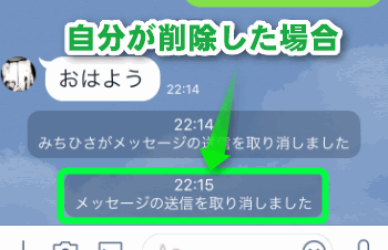 逆に自分が送信取消をした場合は、「メッセージの送信を取り消しました」と表示されます。