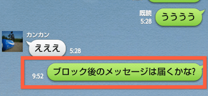 そのためブロック中に送ったメッセージは「既読」になりません。
