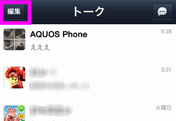 トーク履歴を削除するには、トークの左上にある「編集」をタップ。