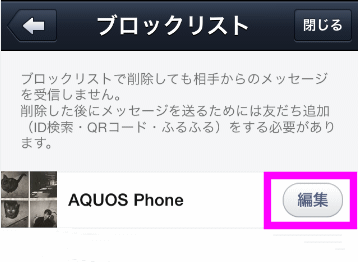「AQUOS Phone」という相手をブロックしました。