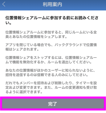 利用案内が表示されるので、「完了」をタップします。