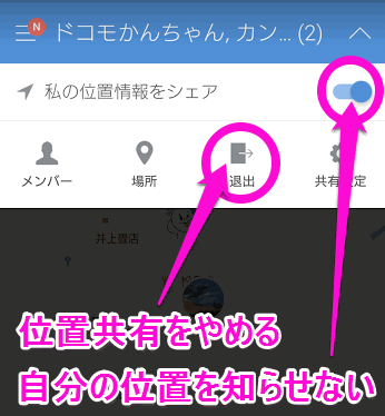 「退出」をタップすれば、相手にはこちらの位置が表示されなくなるし、相手の位置もこちらには表示されなくなります。