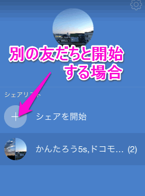 「シェアを開始」をタップして、別々のシェアを作成します。