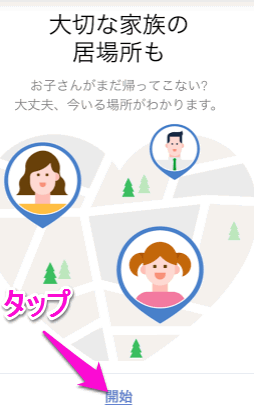 簡単なアプリの使い方が表示されるので、下にある「開始」をタップします。