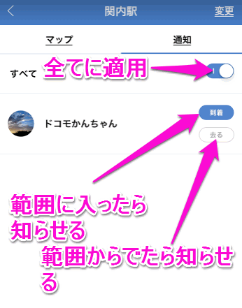 便利なのが相手がとある場所に到着したら。もしくは、その場所から離れたら通知してくれる機能。
