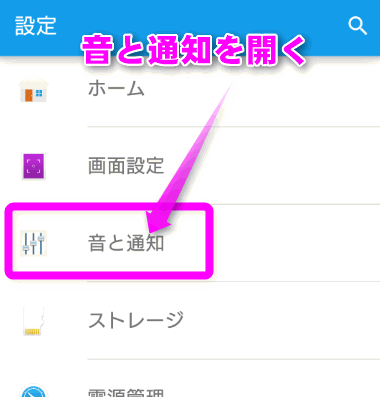 「設定」を開き、「音と通知」という項目を探し、タップします。