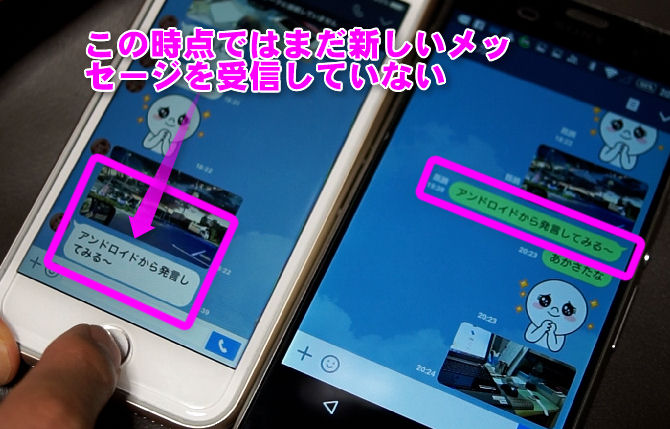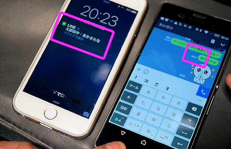 すると、LINEアプリのほうにもメッセージが受信されます。
