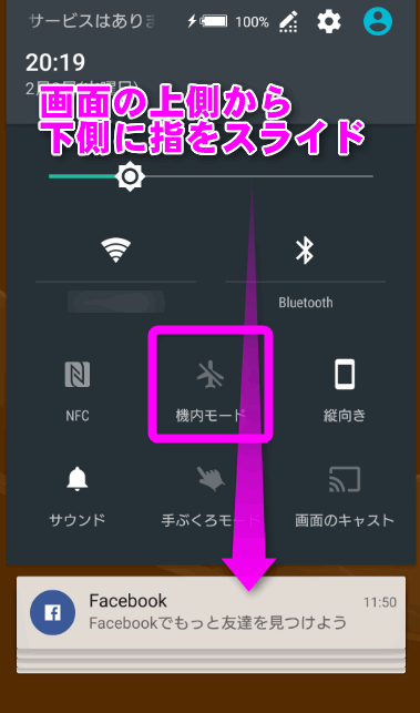 スリープを解除する前に、通知センターを表示させ(アンドロイドの場合は、画面の上から下に指でスライドさせる)、クィック設定の中の「機内モード(飛行機のアイコン)」をタップして、機内モードにします。