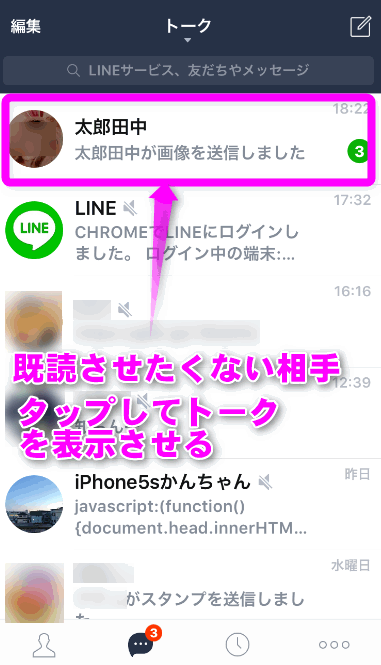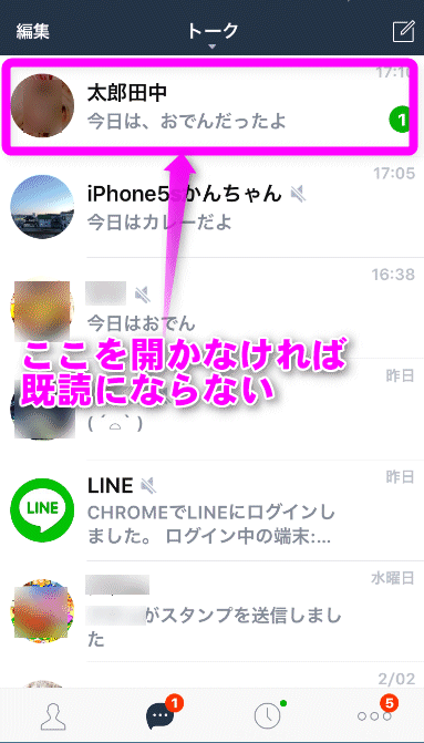 あとは、既読を付けたくない相手のトーク画面を開かなければ、相手には既読マークがつきません。