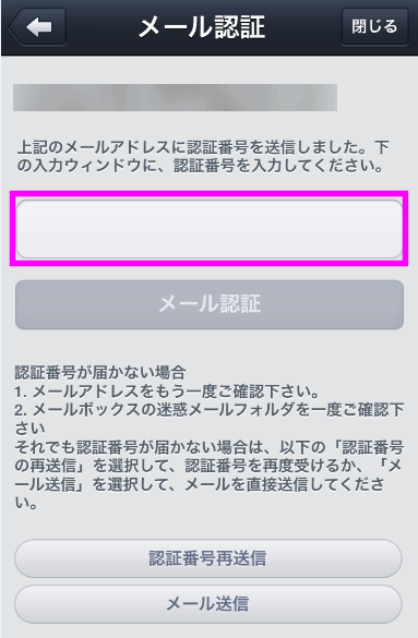 すると4桁の認証番号が記載されたメールアドレスが届くので、メモしておきます。