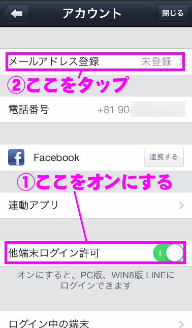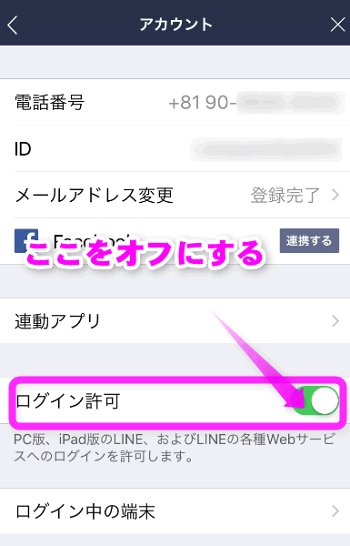 ここをオフにしておけば、パソコン版LINEからログインできません。