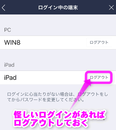 パソコン版のLINEでログインされた場合は、気が付きにくいので注意が必要です。