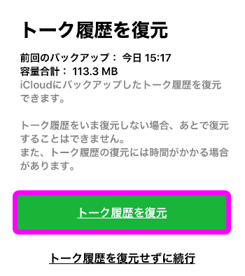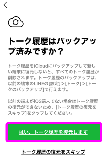 「はい、トーク履歴を復元します」をタップ。