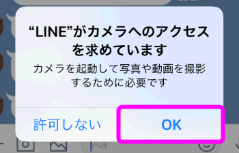 最初の一回だけこのように「カメラへのアクセス」を許可していいか聞いてくるので、OKをタップします。