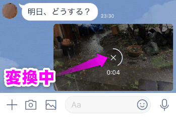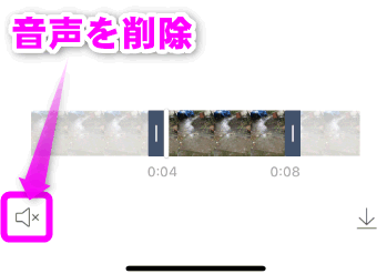 左下のスピーカーのアイコンをタップしてバツじるしにすると、動画の音声を削除して送信できます。