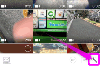 送りたい動画を選択したら、右下の「編集」ボタン(ステッキのようなアイコン)をタップします。