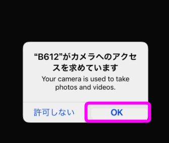 カメラへのアクセスを求めてくるので、「OK」をタップします。