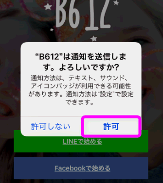 iPhoneの場合は、このような通知を許可するか聞いてくるので、必要に応じて「許可」をタップします。