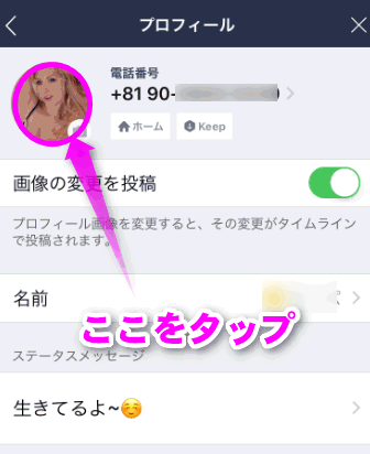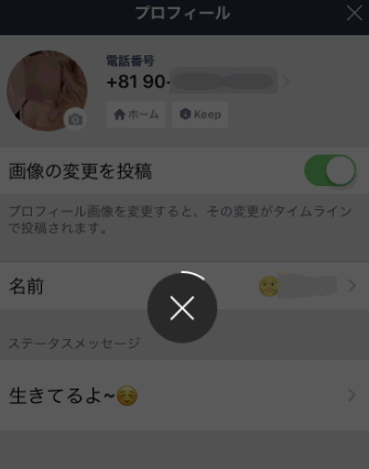 プロフィールを表示させなくても、トークリスト上の画像も動きます。