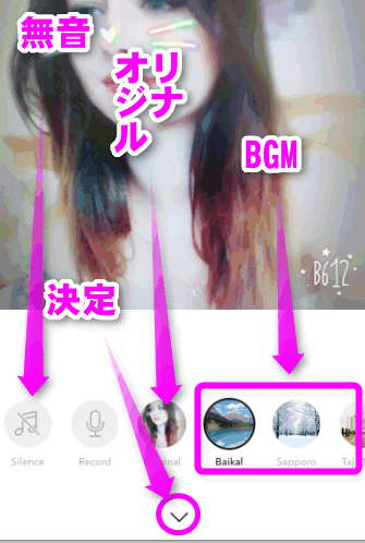 BGMが決まったら、中央の一番下のチェックの部分をタップします。