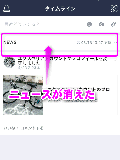 LINE NEWSやLIVEやLINE チームの投稿を消す
