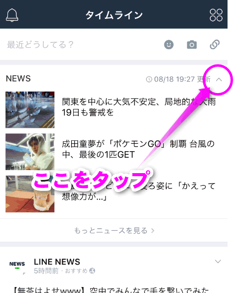 - LINE NEWSやLINEチームなどのタイムラインを非表示にする