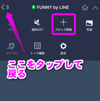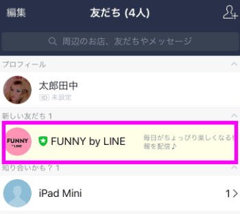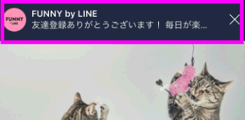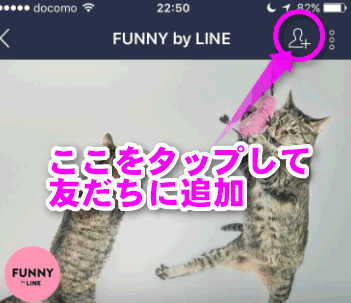 友だち登録した「FUNNY by LINE」の右横の四角で囲った部分をタップします。