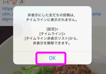 が!削除してしまうとタイムラインの投稿も再び表示(削除後に投稿されたもののみ)されてしまうので注意!