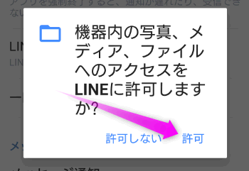 はじめて通知音を変える場合は、このようにメディアやファイルへのアクセスを許可するか聞いてくるので、「許可」をタップします。