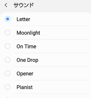 通知音として設定できるサウンドの一覧が表示されるので、好きなサウンドにチェックを入れます。