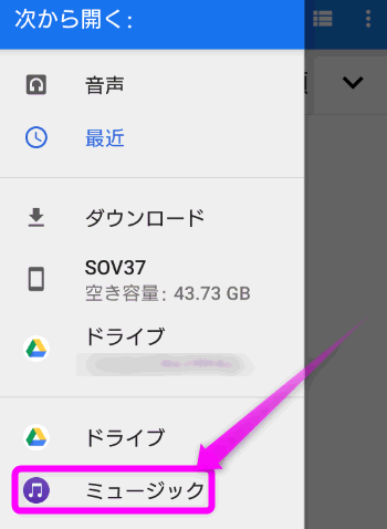 Xperia内の音楽を設定する場合は、「ミュージック」をタップします。