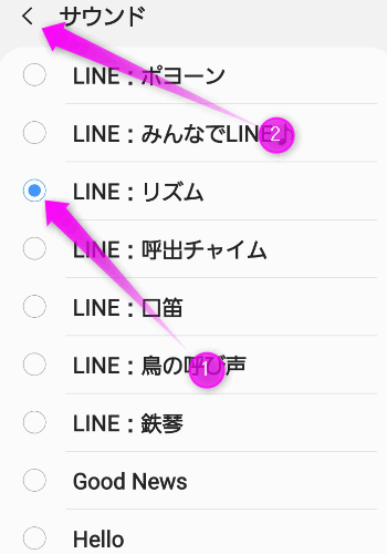 LINEオリジナルの通知音が消えて、端末内の標準の音しか選択できなくなってしまいます。