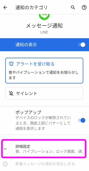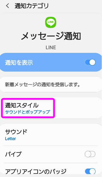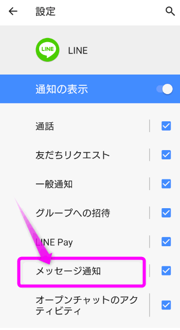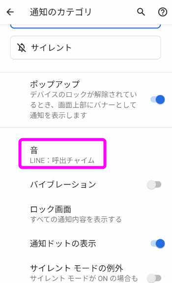 アンドロイドのLINEは、通知の種類ごとに音と表示を変更できるようです。