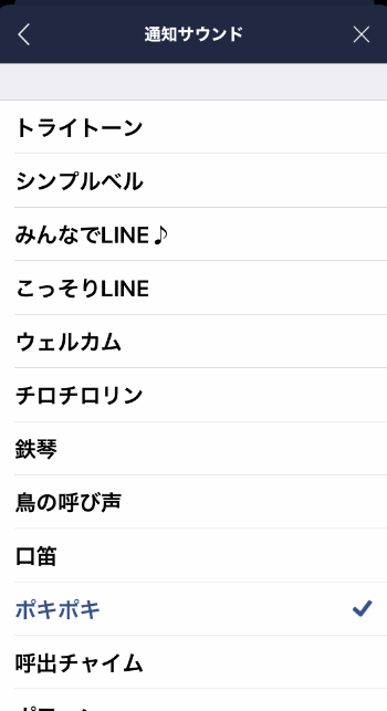 いろいろな通知音が用意されているので好きな通知音を選択し、チェックを入れてください。