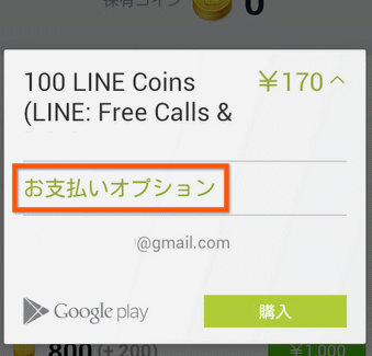 アンドロイドの場合は、支払い方法にスマホの月々の料金とまとめることが出来ます。その場合は、「お支払いオプション」をタップします。